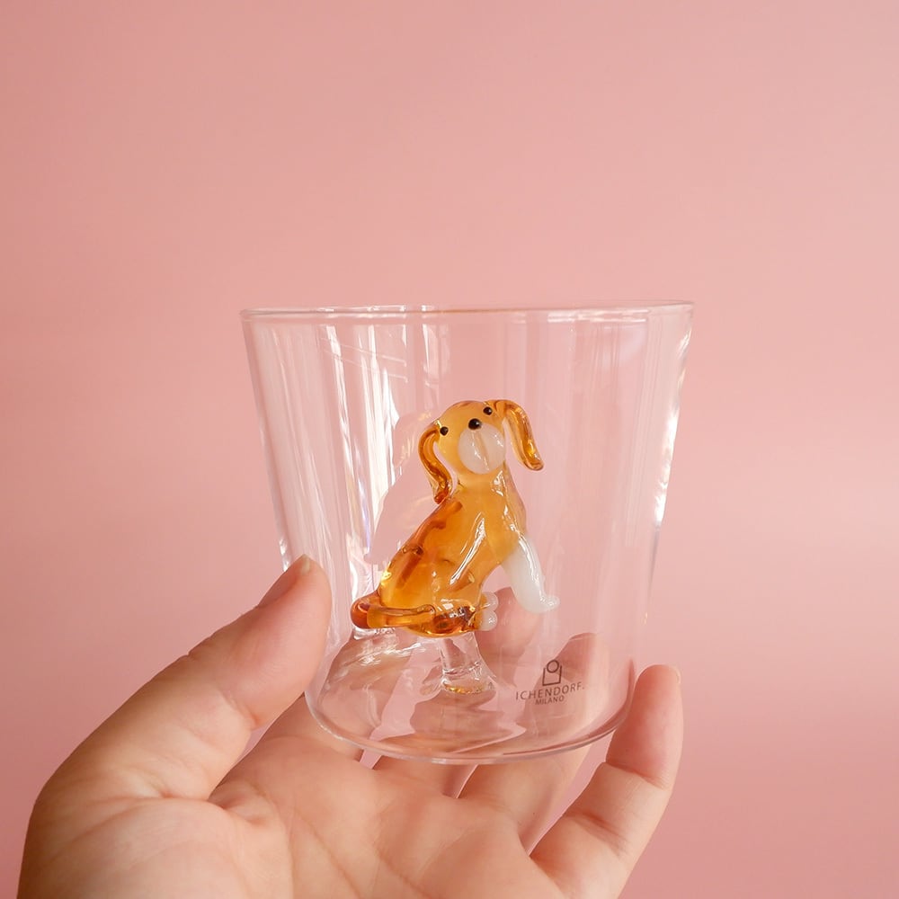 犬いろいろ、ガラスのコップ。