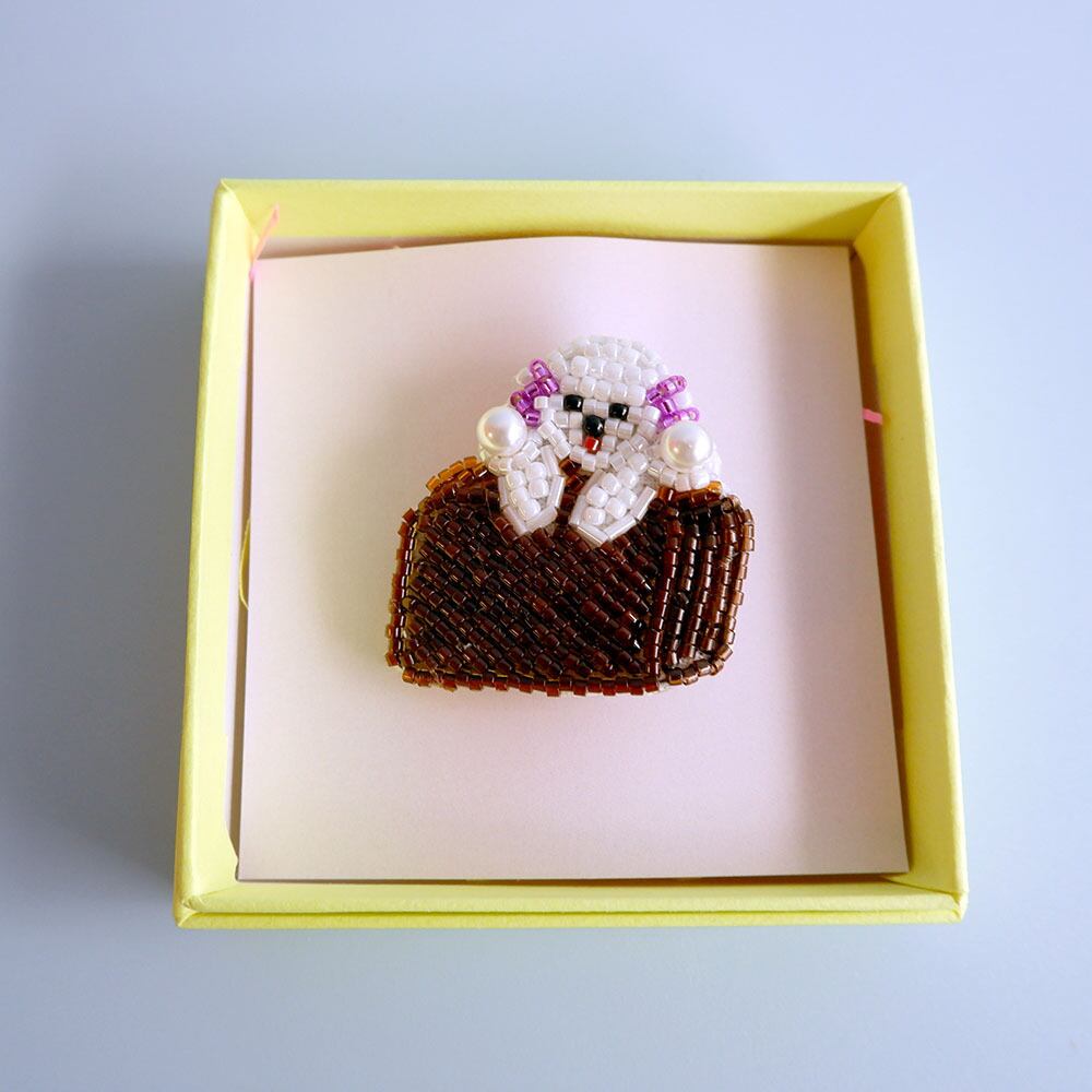 美味しそうな羊羹の上にマルチーズ? 羊羹の質感、ほんのりとした透け感がなんだか本物みたい。 38mm×38mm