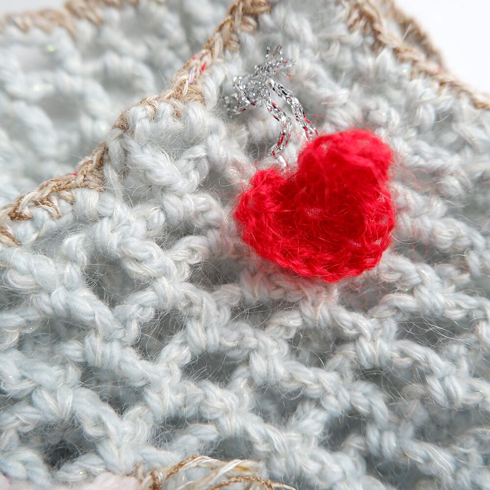 ラメの糸や細いモヘヤの糸を引きそろえて、ふくふくしたネットのバッグを編みました。