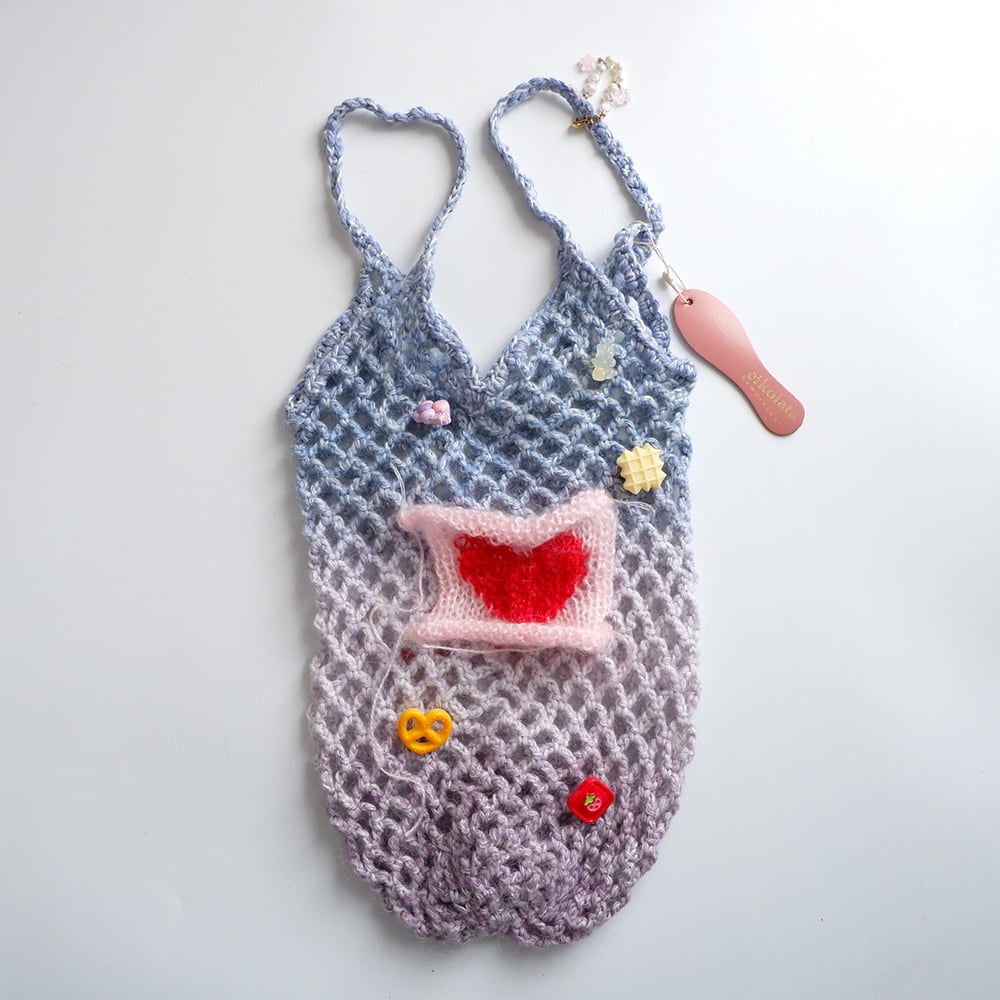 sachiyo oishi/ クロシェネットバッグpinkハート