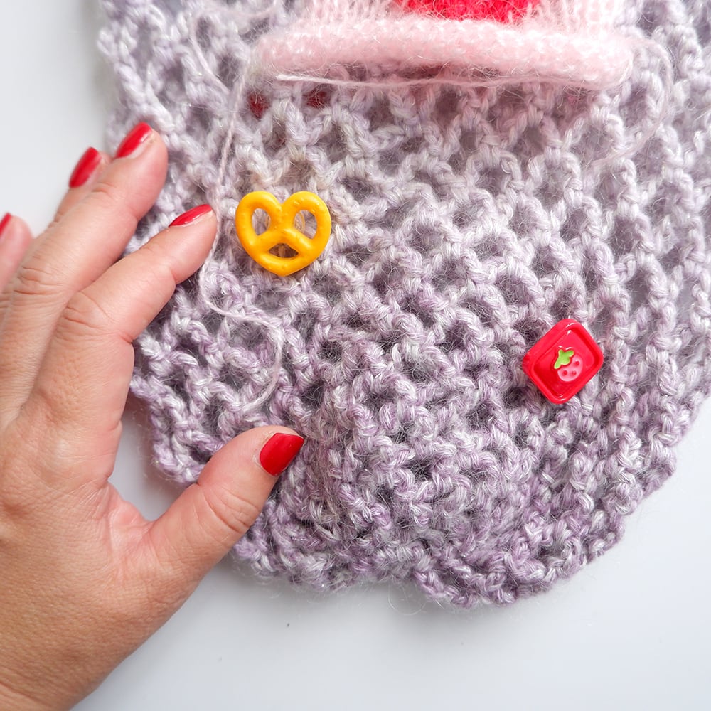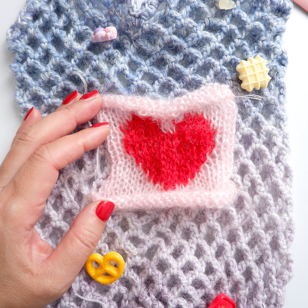 編み込み模様のモヘヤのハート、プラスチックのキュートなモチーフたち、