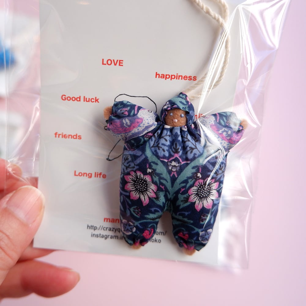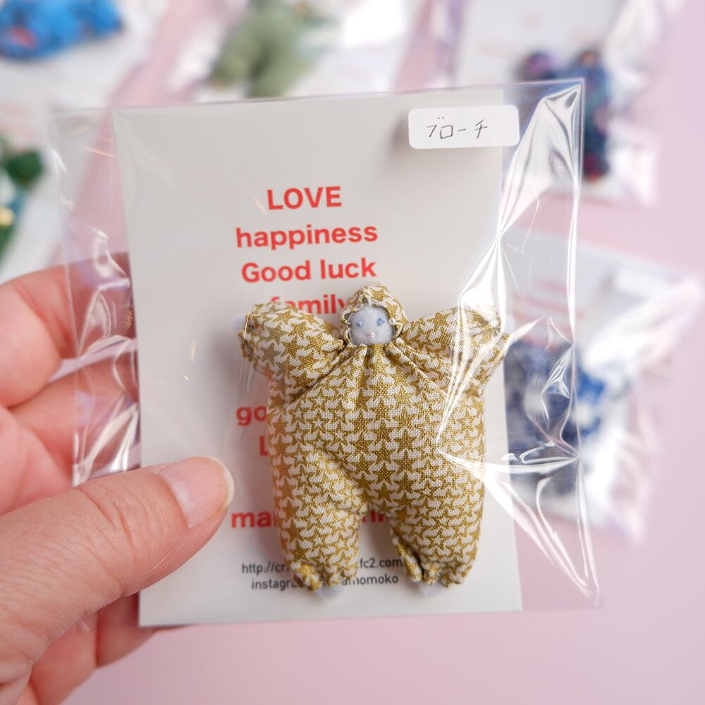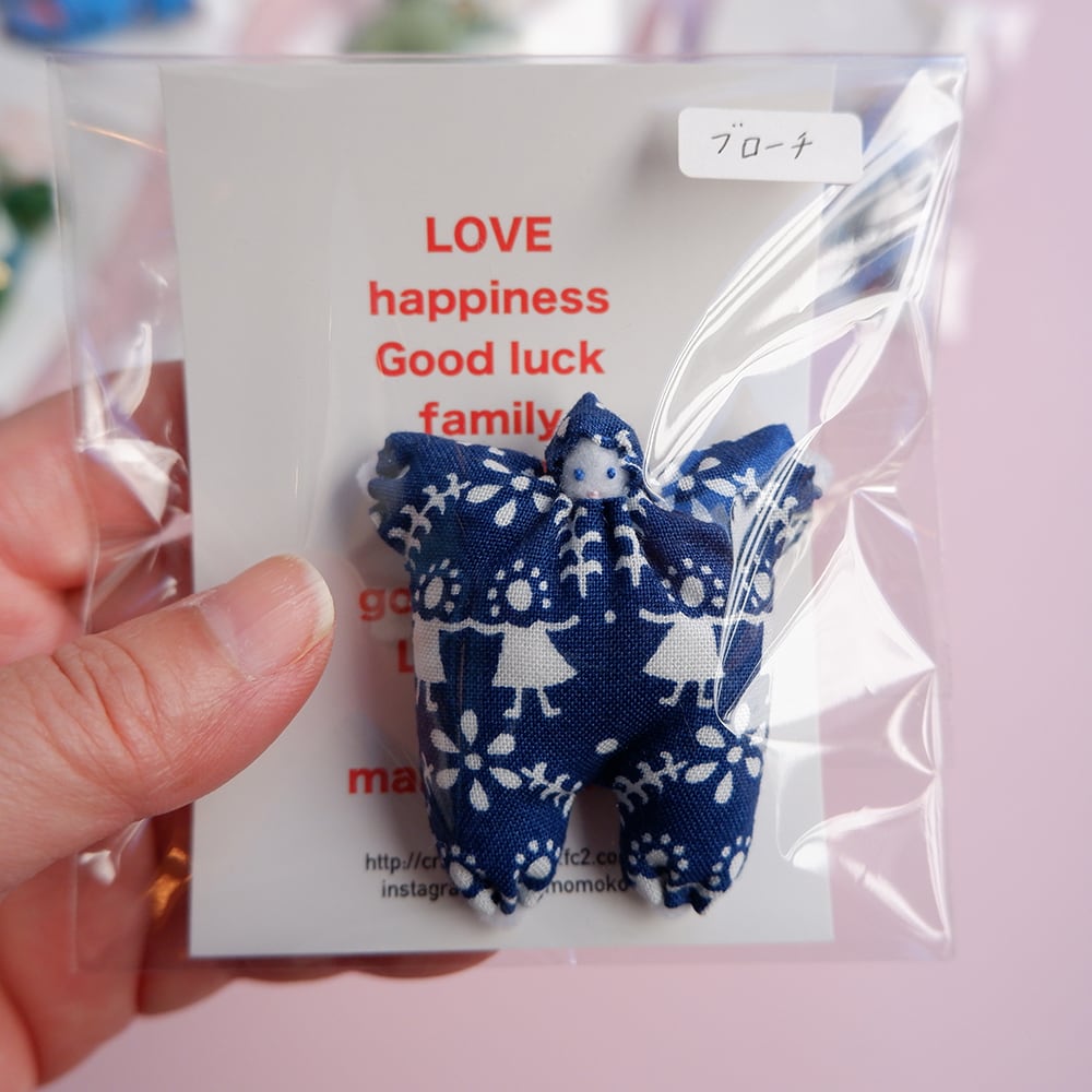 お守りサイズ、とcrazy quiltさんが呼ぶお人形の紐付き飾りと、ブローチです。