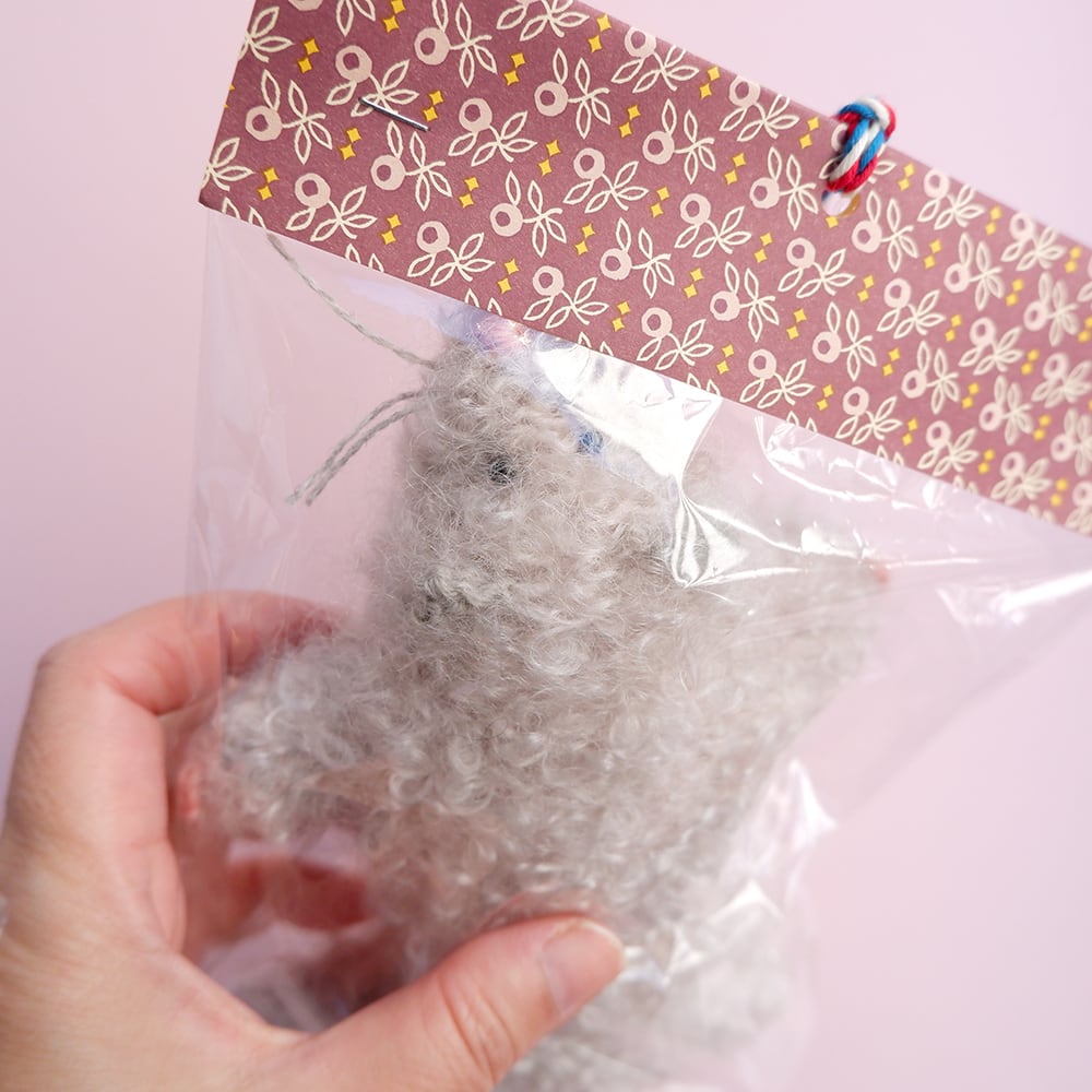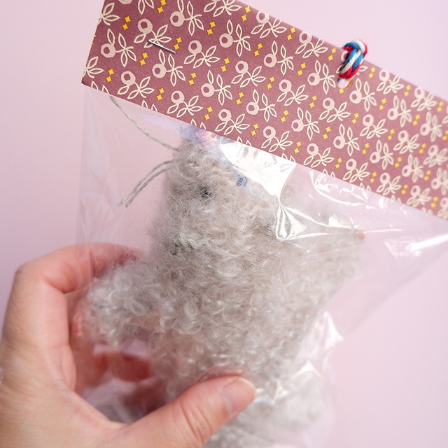 くるくるの立体感がある糸で編まれた可愛いハムスター。
