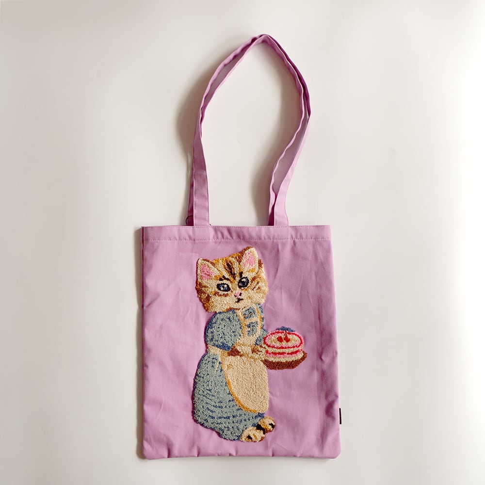 ナタリー・レテの描く人気の動物たちを、もこもことした手触りの刺繍で表現したトートバッグ。刺繍の立体感が可愛いです。
