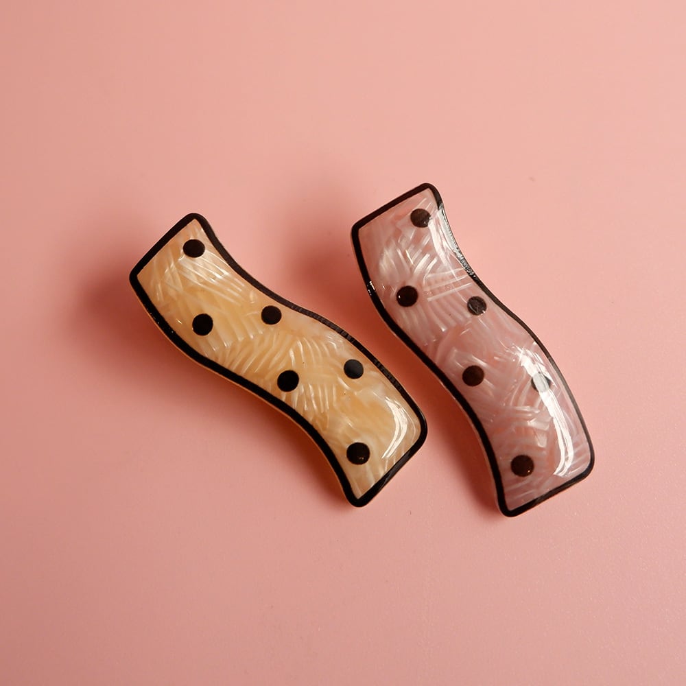 波打つ形の小さめヘアクリップ。 上品な佇まいです。 ○パーツの大きさ 長さ4.5㎝ 幅 1.5㎝ ○金具の長さ 全長 4㎝ 挟む部分の長さ 3㎝