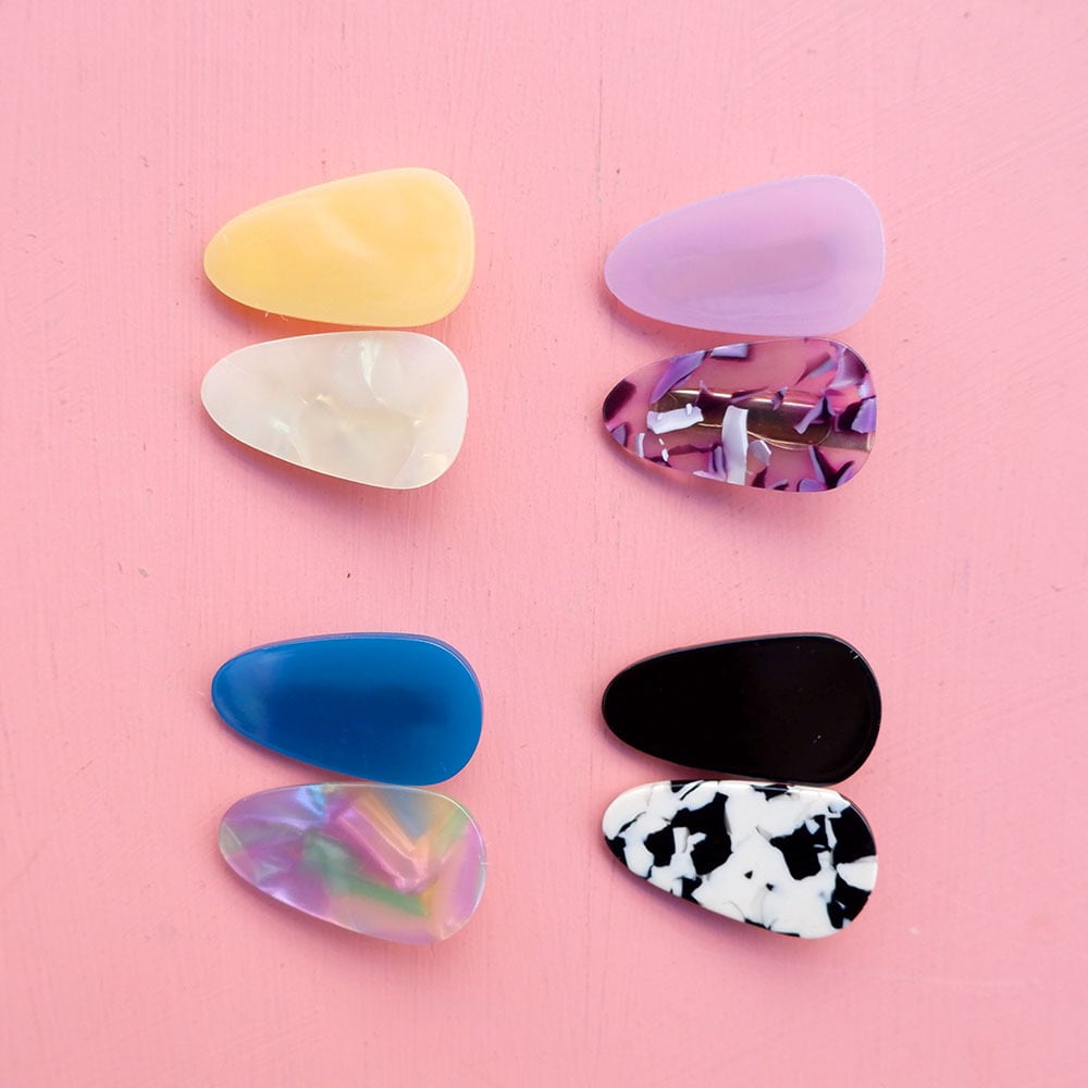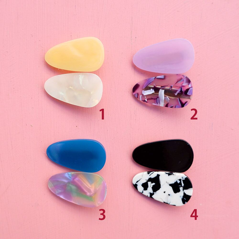 コロンと丸い形の小さ目ヘアクリップのセットです。