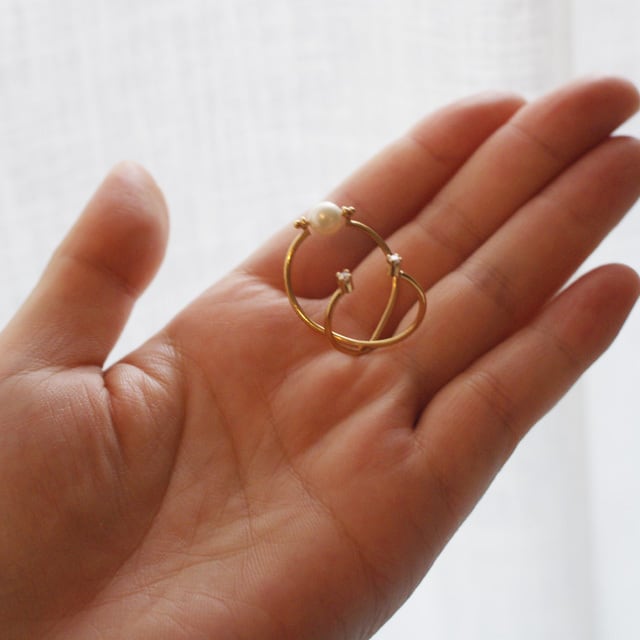 7㎜の淡水パールと2㎜粒のジェムストーンのダブルリングです。